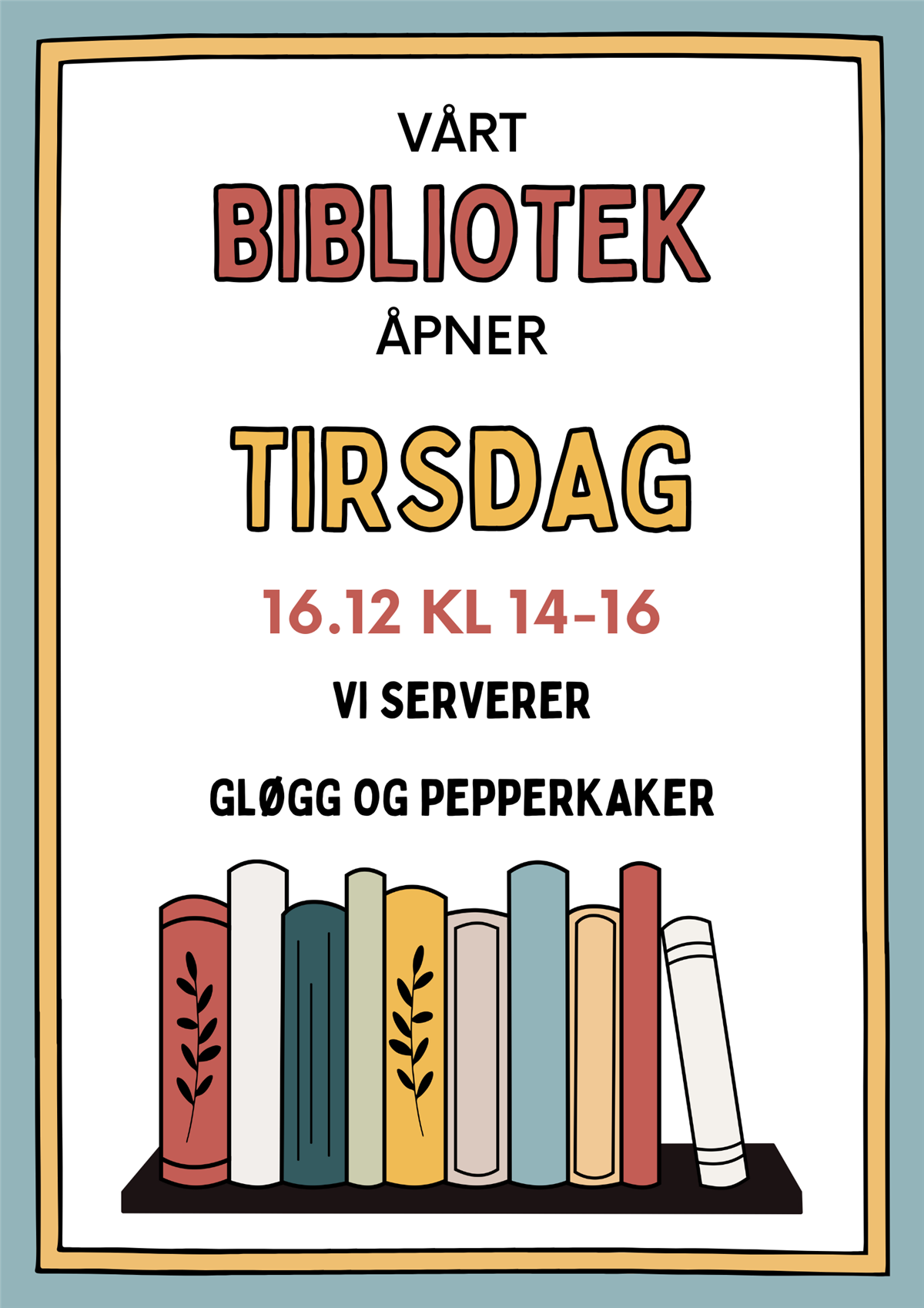 Åpent bibliotek på skolen:Biblioteket er åpent 22.12 kl. 17-19 og 29.12 kl. 17-19 Vi har også bok cafè 23.12 og 30.12 fra kl. 10-12 men enkel gratis servering.Åpningstider for nyåret kommer. Sist endret 17.12.2025 13.23