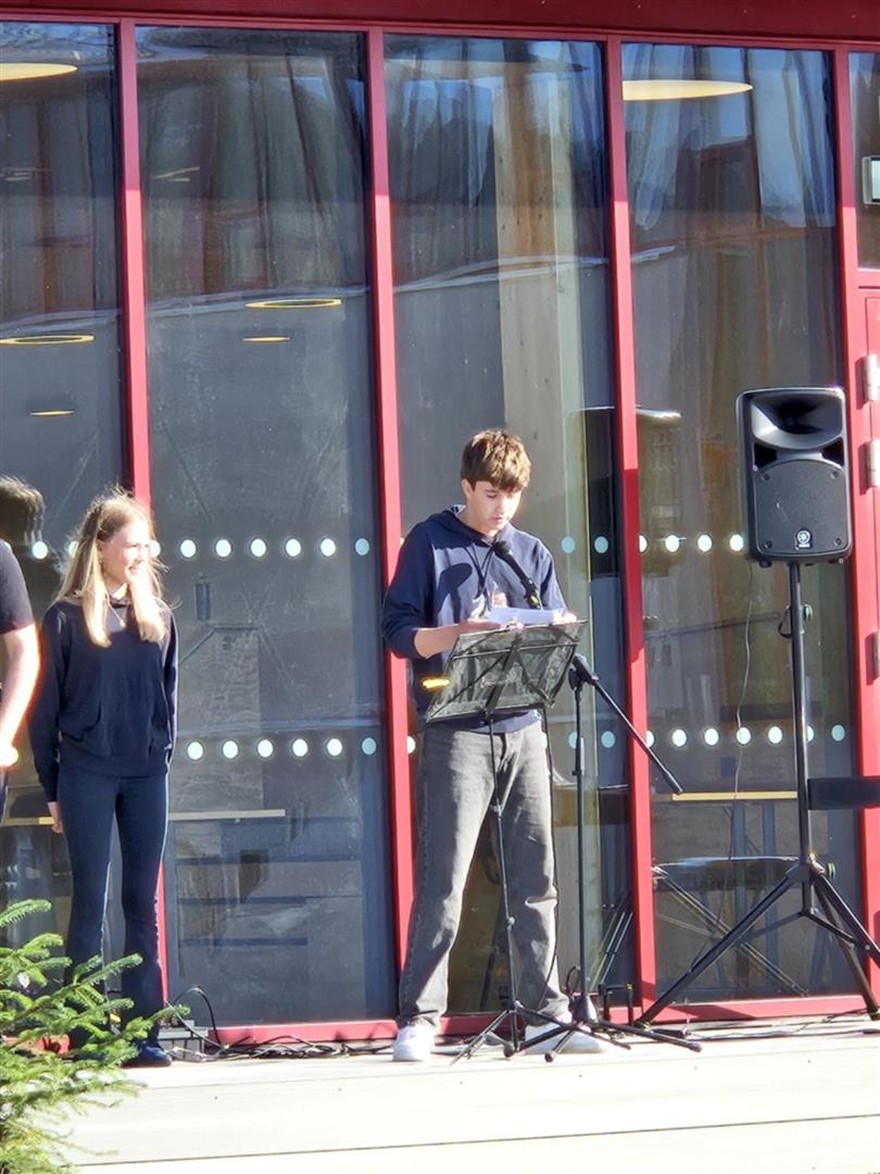 Elevrådet ved Daniela og Henning holdt en flott tale og plantet «framtidstreet» – et levende symbol på håp, vekst og nye generasjoner.