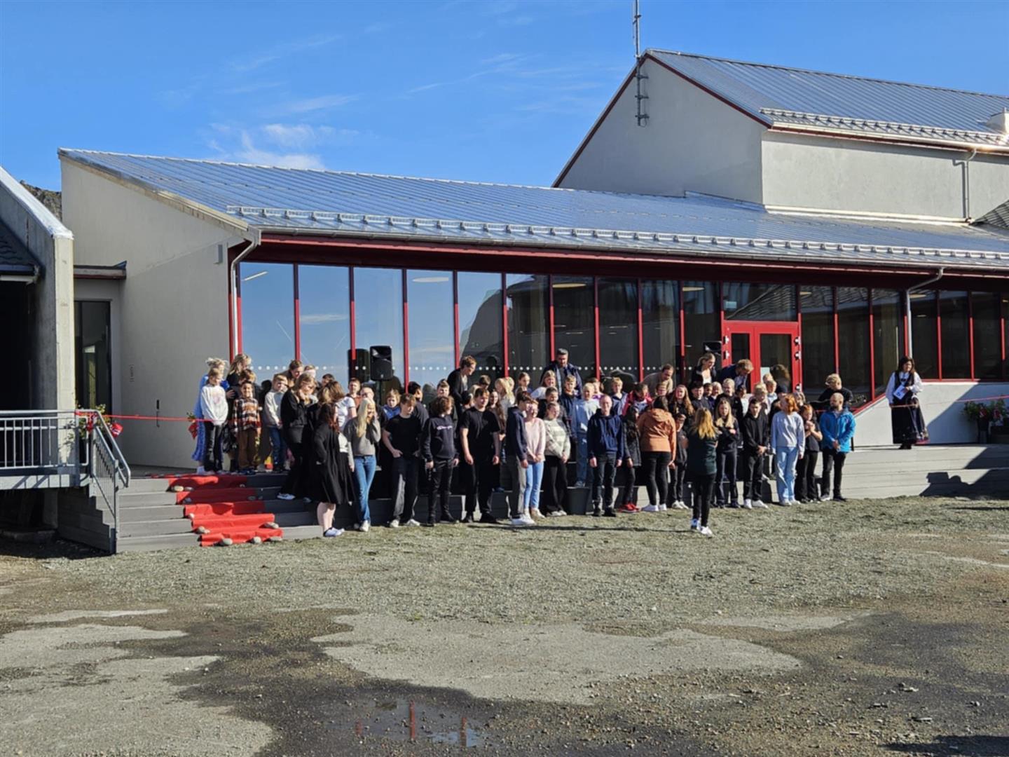 Så kom høydepunktet – snorklippingen. Fem skjønne førsteklassinger med sakser i hendene og stjerner i øynene, som fikk æren av å åpne bygget. Det var et øyeblikk som kommer til å stå igjen som historisk for oss alle.